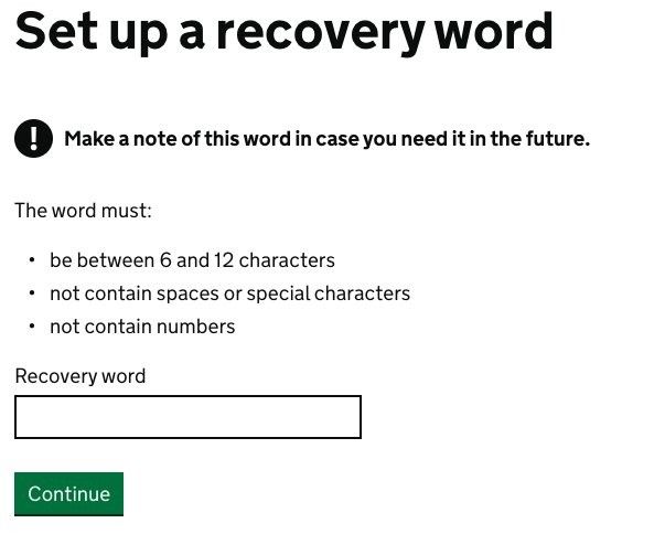 - You then be informed that you need to select a Recovery Word, this is so you can change password should you forget it.