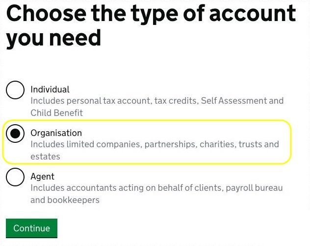 If you are a Limited company or have recently began to work through a newly formed company, you will need to have a personal Government Gateway account for your own taxes as a private individual and then you will need to have an organisation Government Gateway account, for your company’s taxes.